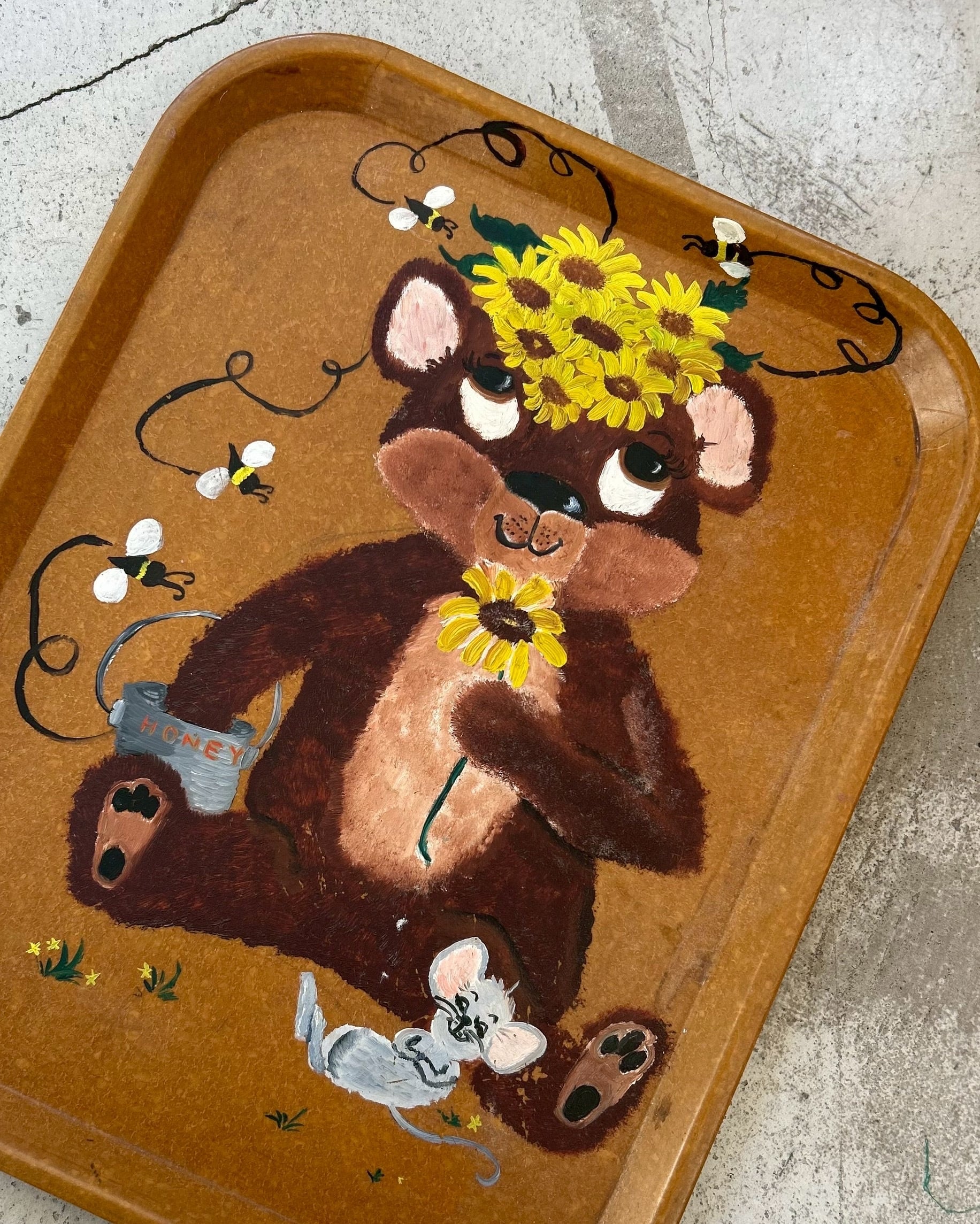 ビンテージ ベア ハンドペイント トレイ / アメリカ